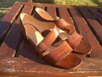 Scarpe da donna LAVORAZIONE ARTIGIANA, MADE IN ITALY, completamente VERA PELLE/VERO CUOIO (tomaia, fodera interna, sottopiede, suola), color marrone medio, N°38.