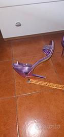 Bellissimi sandali color lilla/viola metallizzato con eleganti listini ricoperti di strass luminosi. Un modello perfetto per un matrimonio, una serata elegante o per dare un tocco di luce a un outfit semplice. Taglia: 38 Altezza tacco: 8 cm (comodo e slanciato) Condizioni: Ottime, indossate pochissimo (come visibile dalle foto). Dettagli: Chiusura con cinturino alla caviglia regolabile. Il finish metallizzato e i brillantini creano dei riflessi bellissimi sotto la luce. Le scarpe sono molto leggere e il tacco è ben bilanciato.