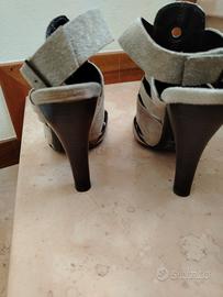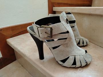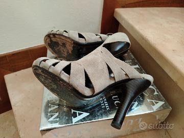 Sandali tacco alto, scamosciati color beige, numero 38, brand Luca Stefani.