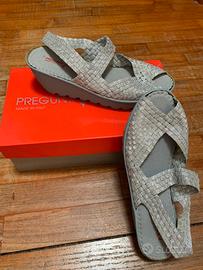 Sandali Pregunta, come nuovi, stoffa argentata elasticizzata. Ottima vestibilita’.