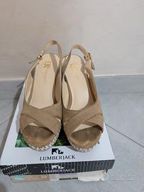 sandali donna Lumberjack 38 plateau 3 cm tacco 10 cm pelle scamosciata beige taupe. usato poco