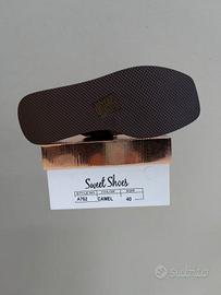 Nuovo mai indossato taglia 40 Lunghezza interna 27 cm Bellissimi sandali con zeppa (platform) del brand Sweet Shoes, nuovi con scatola originale. Caratterizzati da un design moderno con fasce incrociate in morbido suede color cammello e dettagli in ecopelle marrone scuro con micro-borchie dorate. Il platform è solido ma leggero, perfetto per chi cerca altezza senza rinunciare alla stabilità. La punta squadrata conferisce un tocco contemporaneo e trendy, ideale per la stagione estiva. * Marca: Sweet Shoes * Colore: Camel / Testa di Moro * Altezza Zeppa: 6,5 cm (altezza uniforme, molto comoda) * Chiusura: Cinturino alla caviglia regolabile con fibbia dorata * Stile: Chunky, Urban, Boho-chic Spedizione rapida e imballaggio curato. #sandali #platform #sweetshoes #sandali40 #zeppa #summerstyle #chunky #camel #scarpedonna #nuoviconcartellino #vinteditalia
