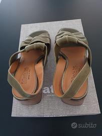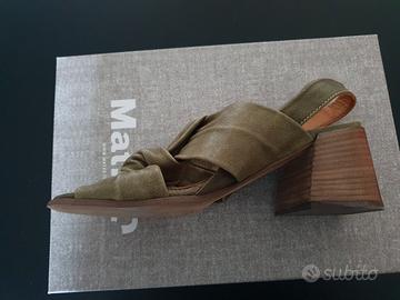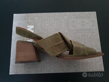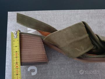 Sandali Mat:20 in pelle color verde muschio, tacco di 6 cm, numero 36, mai indossati, pagati 129 euro