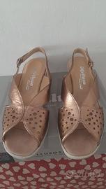 Stupendi sandali Melluso, in pelle color bronzo,piccola zeppetta che slancia,luminosi e comodi,svendo, prezzo listino 120 euro