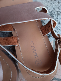 Sandali bassi in cuoio, marca Migato, colore oro rosa, taglia 37. Mai indossati. Comprati in Grecia