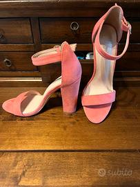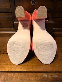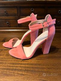 Sandali con tacco alto, in camoscio, color corallo (il colore reale è più brillante rispetto alla foto)