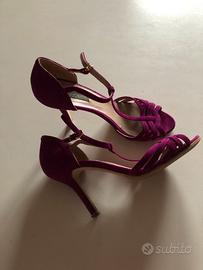 Sandali donna scamosciati n.37. Tacco cm 9. Suola vero cuoio