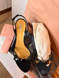 Vendo sandalo gioielli Miu Miu in colorazione blu. Ho usato queste scarpe solo una volta. Una delle due scarpe ha il tacchetto da sostituire ma si risolve con pochi euro da hn calzolaio.