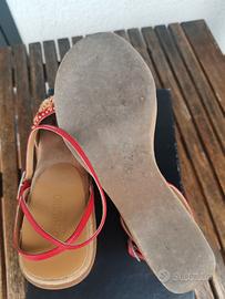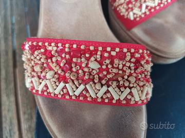 Sandali con zeppa alta, in vero sughero e cinturino alla caviglia.