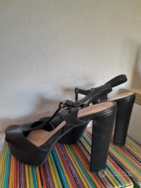 Indossati in un'unica occasione, al chiuso. Il tacco è alto 12 cm, la pianta normale (non è pianta larga cioè). In pelle, molto belle.