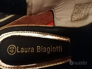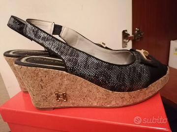 SANDALI IN PELLE CON ZEPPA DA DONNA NR 40 NUOVI CON SCATOLA LAURA BIAGIOTTI COLORE NERO E ARGENTO RITIRO A MANO