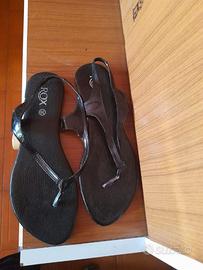 Vendo sandali neri da donna, numero 39, modello infradito con cinturino alla caviglia.