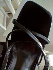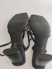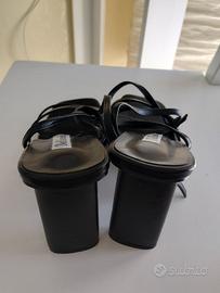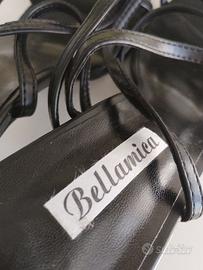 Sandali Neri con Listini Sottili Incrociati Bellamica nr. 39 senza scatola. Tacco cm 9 a blocco largo e stabile, comodo per essere indossato a lungo senza stancare il piede. Similpelle di qualità, finitura liscia e opaca. Listini sottili intrecciati, punta squadrata alla moda (square toe), tallone aperto con cinturino alla caviglia dotato di fibbia argentata. Bellissimi ed eleganti sandali neri con tacco largo, perfetti per completare un look da sera o per un evento speciale. Il design minimalista con listini sottili incrociati sul davanti e cinturino regolabile alla caviglia li rende un passpartout raffinato e sensuale. Ideali da abbinare a un tubino nero, una gonna midi o anche a un paio di jeans skinny per un tocco chic istantaneo. Un vero pezzo forte per il tuo guardaroba! #Bellamica #SandaliNeri #TacchiAlti #TacchiLarghi #TacchiABlocco #PuntaSquadrata #SquareToe #Minimal #Elegante #Sera #Cerimonia #Sandali39 #Chic #BlackSandals #Heels #BlockHeels