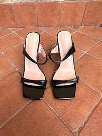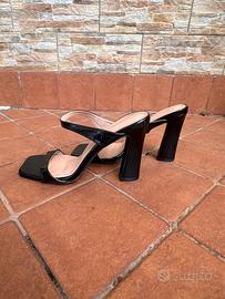 sandali neri similpelle tacco largo come nuovi usati solo una volta per servizio fotografico