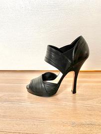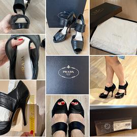 Sandali Prada in pelle nera con plateau davanti di 1/1,5 e tacco h 13 cm. (Calzata di circa 12).