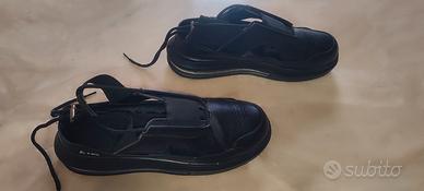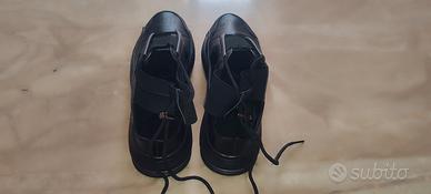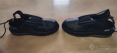 Sandali neri con chiusura regolabile. - Design moderno e versatile. - Materiale resistente e di qualità. - Suola ammortizzata e comoda - Suoletta interna in pelle - Spazio disponibile per il piede da 27 a 28