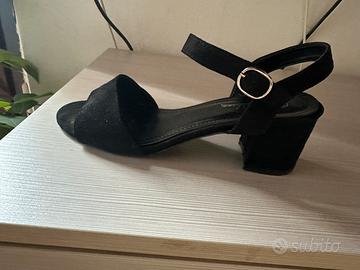 Sandali neri scamosciati numero 41, altezza tacco 6,5 cm