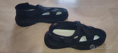 Sandali neri in tessuto traspirante, perfetti per l'estate. Sono regolabili per una calzata ottimale. - Tessuto traspirante - Chiusura con velcro regolabile - Suola comoda ammortizzata - Soletta interna in memory - Lunghezza piede 26.5/27 cm