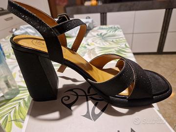 Sandali con tacco nuovi, comprati quest'estate e mai usati, colore nero glitter, nr. 38