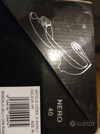 Vendo sandali JELLY, mai indossati x acquisto sbagliato sono neri di plastica con rosa, n.40, tacco 5 cm, con la scatola originale vendo a 7 euro, per altre informazioni non esitate a contattarmi.