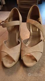 sandali primaverile in camoscio e cuoio colore tortora chiaro. messi una sola volta per un matrimonio.