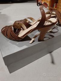 Sandali in cuoio marroni nr.36 con tacco medio e laccetti alla caviglia. Usati pochissimo, praticamente nuovi