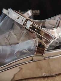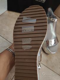 Sandali donna nr. 37 color argento lucido con cinturino. Mai usate, in scatola originale Nuove