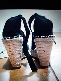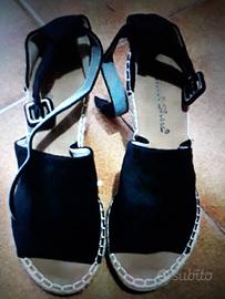 Sandali di colore nero modello opentoe in tessuto morbido (tipo velluto) con cinturino alla caviglia zeppa di 10cm nuove mai indossate misura 36