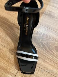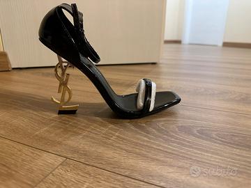 Sandali opyum neri in vernice con tacco dorato
