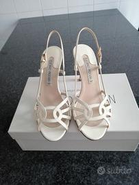 In vernice bianca, N.37, tacco 8cm circa color oro, ottimo stato come nuovi, bellissimi!!!