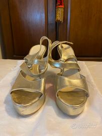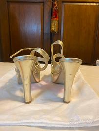 Eleganti sandali con tacco alto e plateau. - Design con cinturino alla caviglia. - Finitura metallica lucida.