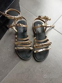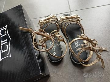 Sandali oro CULT, n.36, usati poco, ottimo stato, con doppio cinturino alla caviglia. Suola in gomma decorata con brillantini.