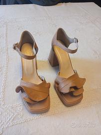 Cinturino alla caviglia con piccolo elastico che aiuta la calzata. Tacco alto.