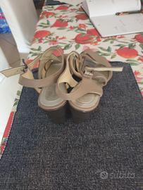 Sandali in pelle color tortora tacco 8 cm tenuti