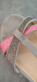sandali bassi Cafènoir con fascetta di lustrini grigia e fucsia piccola ammaccatura sul tacco portati pochissimo
