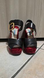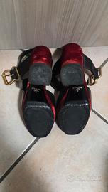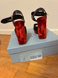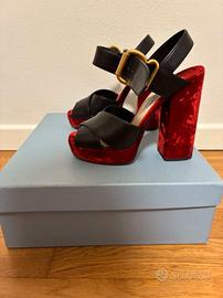sandali Prada con tacco in velluto rosso usati ma ben tenuti,taglia 37