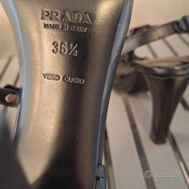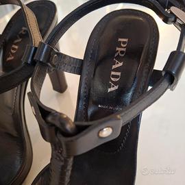 Vendo sandali Prada, in pelle colore nero, come nuovi. Usati solamente 2 volte, tacco cm 9,50, sono anche comodi. Molto versatili.