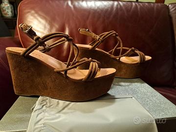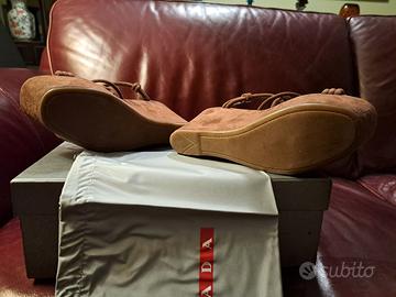 Sandali Prada, marroni scamosciati, con scatola e dust bag. Numero 39.
