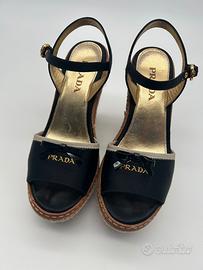 Sandali Prada neri con zeppa h 10.5 cm e plateau h 4.5 cm. Indossati poche volte Taglia 35 veste un 35.5