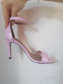 - In vernice lucida rosa, cinturino alla caviglia regolabile
