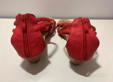 Sandali rossi in similpelle, n.39 con poco tacco. Usati pochissimo, in ottime condizioni.