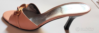 Sabot vintage, misura 37, tacco stiletto 8cm, pelle rosa cipria. Made in Italy. Marchio 'Genny Ugo'