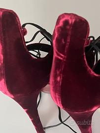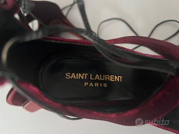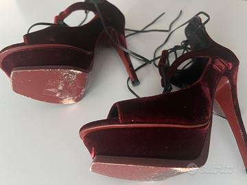 Vendo sandali originali Saint Laurent Paris in velluto color bordeaux, modello con plateau e tacco alto a spillo, estremamente eleganti e sensuali.