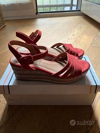 Bellissimi sabot rosso corallo con zeppa in corda colorata. Mai utilizzati e con scatola originale Misura 38
