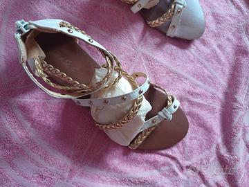 Sandali alla schiava intrecciati color oro e bianco, perfetti per l'estate. Sono usati, ma in ottime condizioni tg 38