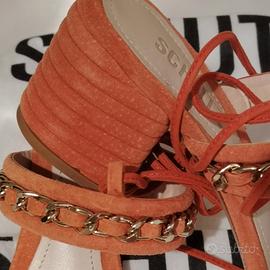 Sandali belli e colorati come l'estate❤ Tinta unita Effetto scamosciato, Interno in pelle, Suola in cuoio Allacciatura alla caviglia Punta tonda Tacco geometrico Senza Applicazioni Prezzo brand 180 euro