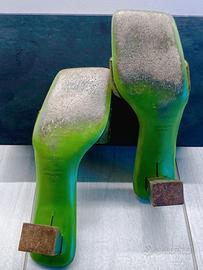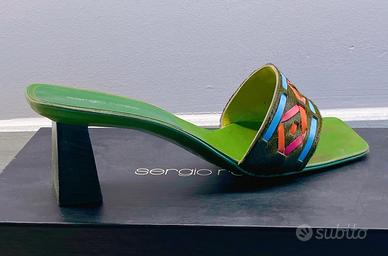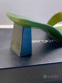 Sandali Sergio Rossi verdi con pelle di cavallino