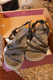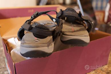 Vendo bellissimi sandali Skechers Reggae Slim (modello Vacay),ideali per chi cerca il massimo comfort senza rinunciare allo stile. Sono perfetti per l'estate, le passeggiate all'aperto o per un uso quotidiano grazie al design "Outdoor Lifestyle". - Modello: Skechers - Reggae Slim - Vacay - Colore: Nero con dettagli geometrici tono su tono sulle fettucce - Comfort: Dotati di plantare Memory Foam ammortizzato che si adatta alla forma del piede. - Materiale: Fettucce in tessuto elasticizzato e sintetico per una calzata morbida. - Chiusura: Cinturino posteriore regolabile per una tenuta sicura. - Condizioni: Ottime, indossati pochissimo, scatola inclusa.