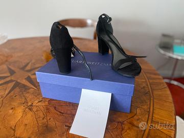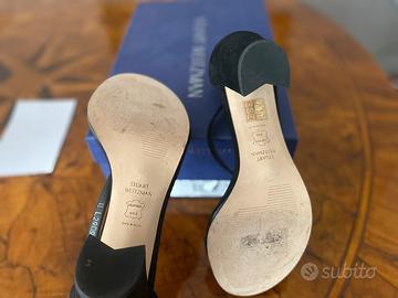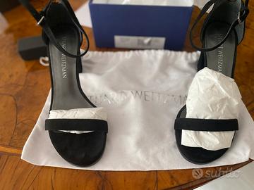 Bellissimi sandali neri in camoscio 37 1/2. Messi solo una volta. Conservati nella scatola originale con sacchetto porta scarpe e certificato. Bellissimi ottimo affare. Visibili Bergamo città