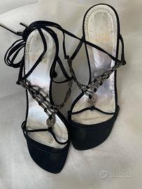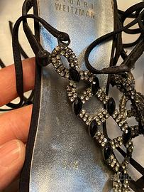 Sandali eleganti Stuart Weitzman , misura 38 1/2 suede nero con pietre, tacco alto